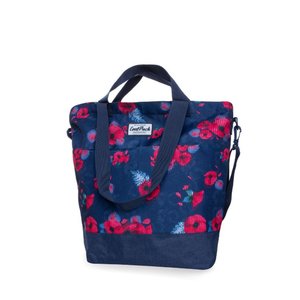 - Taška je v tmavě modrém provedení s potiskem červených květů.