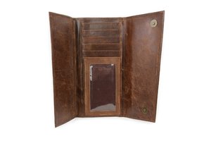 - Uvnitř má devět kapes na karty či vizitky, dvě dlouhé kapsy na papírové peníze a jednu průhlednou kapsu na fotky.